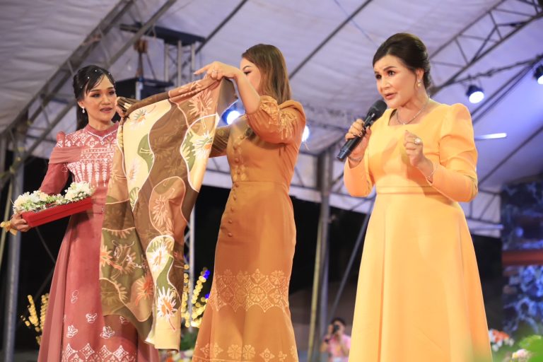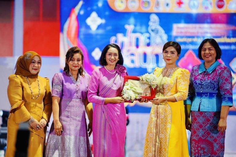 แม่บ้านมหาไทย จังหวัดสงขลา จัดประมูลผ้าบาติกลายใบตาล ที่เขียนลายและลงนามโดยผู้ว่าฯ สงขลา ผืนเดียวในโลก