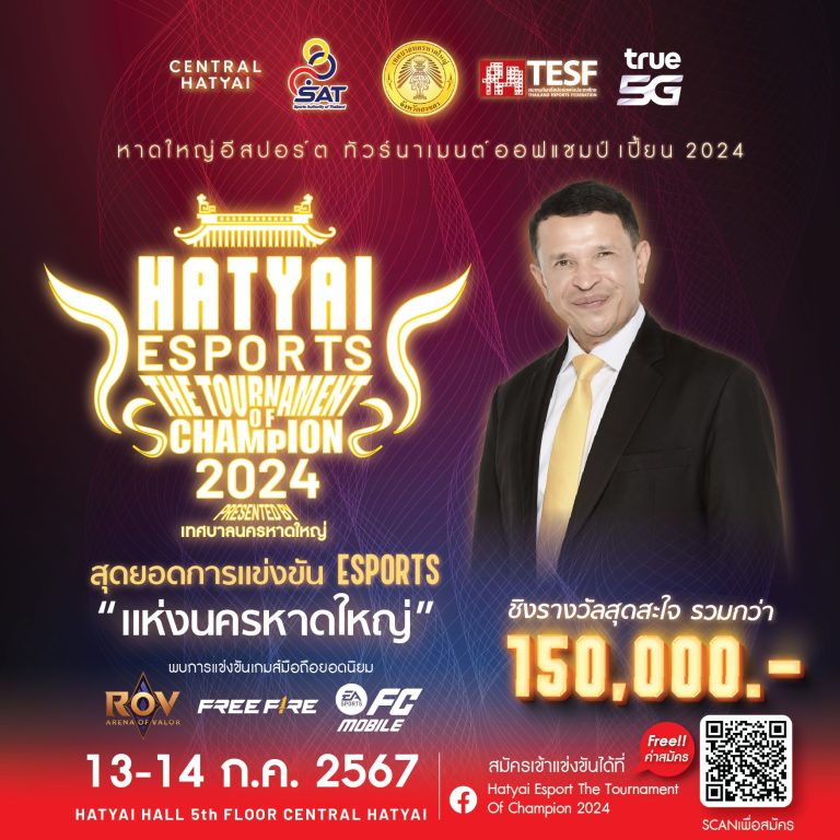 เทศบาลนครหาดใหญ่ จัดงาน "Hatyai Esport The Tournamant of Champion 2024 โดยได้รับการสนับสนุนจาก สมาคมกีฬาอีสปอร์ตแห่งประเทศไทย การกีฬาแห่งประเทศไทย ทรูคอร์ปอเรชั่น เซ็นทรัล หาดใหญ่