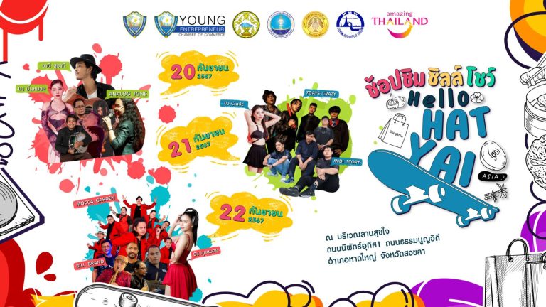 วันที่ 20-22 กันยายน 2567 ณ บริเวณลานสุขใจ ถนนนิพัทธ์อุทิศ 1 อ.หาดใหญ่ จ.สงขลา เตรียมพบกับ…ร้านค้าร้านอาหารมากมาย การแสดง แสง สี เสียง