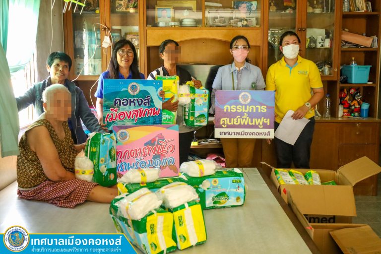 วันอังคารที่ 22 ตุลาคม 2567 เทศบาลเมืองคอหงส์ โดย เจ้าหน้าที่กองสาธารณสุขและสิ่งแวดล้อม พร้อมด้วย คณะกรรมการศูนย์ฟื้นฟูสมรรถภาพเพื่อพัฒนาคุณภาพชีวิตผู้สูงอายุและผู้พิการตำบลคอหงส์ ทีมสหวิชาชีพ อสม. และ Care giver (CG) ลงพื้นที่เยี่ยมบ้านผู้มีภาวะพึ่งพิง (LTC) เพื่อมอบวัสดุการแพทย์ อาทิเช่น ผ้าอ้อมผู้ให