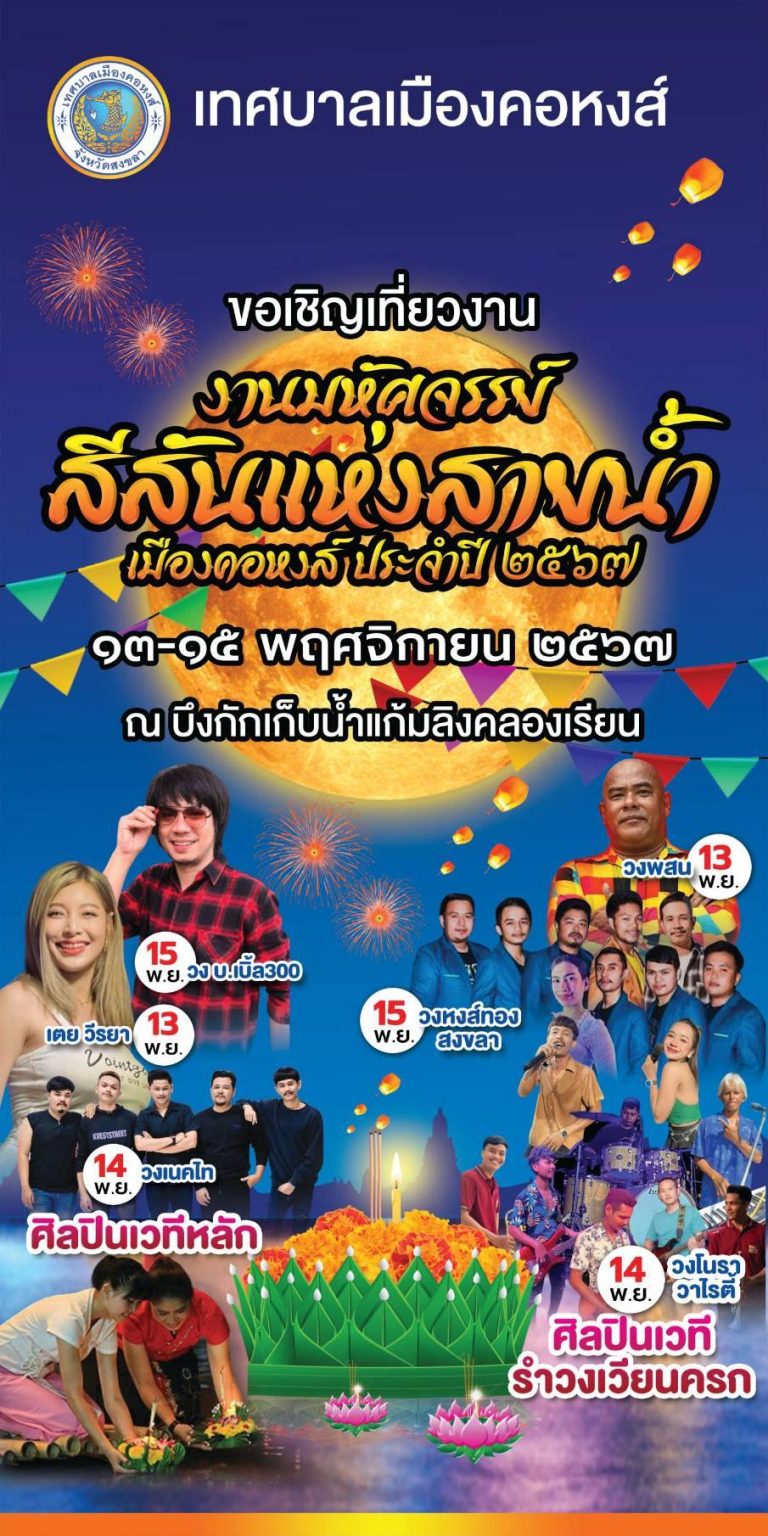 เริ่มพรุ่งนี้งานสีสันแห่งสายน้ำ 13-15 นี้เทศบาลเมืองคอหงส์