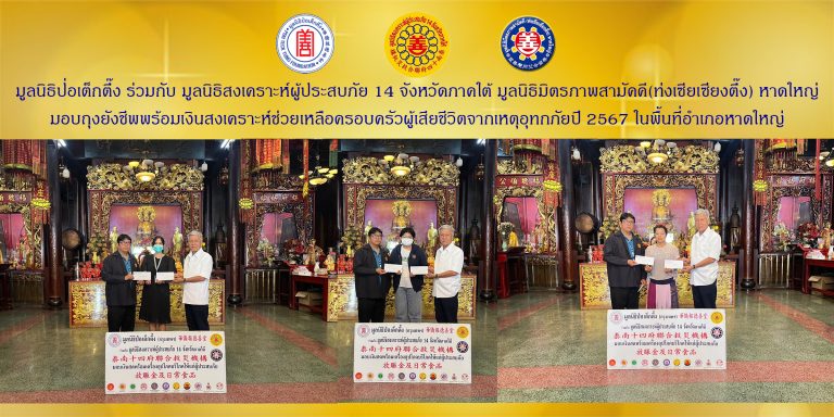 วันนี้ 9 มกราคม 2568 เวลา 10.00 น. มูลนิธิป่อเต็กตึ๊ง ฝ่ายสังคมสงเคราะห์ นำโดยคุณรัชพร ประสงค์ทรัพย์ หัวหน้าแผนกสาธารณภัย นำทีมเจ้าหน้าที่แผนกสาธารณภัย และเจ้าหน้าที่แผนกบรรเทาสาธารณภัย ร่วมกับมูลนิธิสงเคราะห์ผู้ประสบภัย 14 จังหวัดภาคใต้ และมูลนิธิมิตรภาพสามัคคี (ท่งเซียเซี่ยงตึ๊ง) หาดใหญ่ นำโดย คุณวิเชียร เดชธีรชัย หัวหน้าแผนกบรรเทาสาธารณภัย-กู้ภัย ,คุณชัย แซ่บ่าง รองหัวหน้าแผนกบรรเทาสาธารณภัย-กู