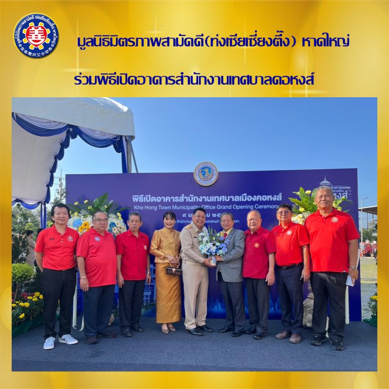 วันนี้ 9 มกราคม พ.ศ. 2568 มูลนิธิมิตรภาพสามัคคี (ท่งเซียเซี่ยงตึ๊ง) หาดใหญ่นำโดยคุณอรุณชัย ศิริมหาชัย ประธานกรรมการบริหารมูลนิธิฯ , คุณนิพัชร ชีววัฒนาพงศ์ รองประธานมูลนิธิฯ , คุณนิกร คงคาเมธากุล รองประธานมูลนิธิฯ , คุณแสง ชัยจีระธิกุล รองประธานมูลนิธิฯ , ภูชิชญ์ ยงเกียติไพบูลย์ เลขานุการไทย , คุณกิตติศักดิ์ ปราชญาเปรื่อง หัวหน้าธุรการ , คุณศุภกร หงส์ฟ่องฟ้า หัวหน้าสุสาน ได้เดินทางไปร่วมพิธีเปิดอาค
