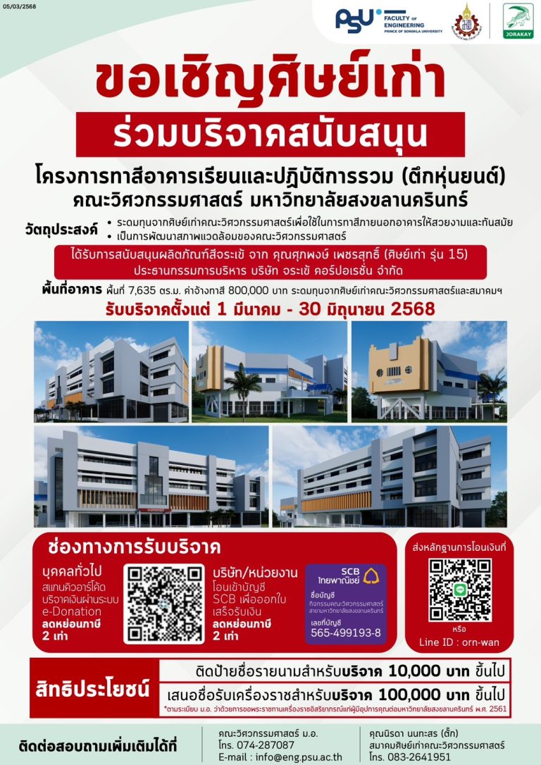 เมื่อวันที่ 5 มีนาคม 2568 คณะวิทยาศาสตร์ มหาวิทยาลัยสงขลานครินทร์ จัดกิจกรรมบริจาคโลหิต ณ ลานกิจกรรมศูนย์ปาฐกถาประดิษฐ์ เชยจิตร (ตึกฟักทอง) โดยมีคณาจารย์ บุคลากร นักศึกษา และประชาชนทั่วไปเข้าร่วมบริจาคโลหิตกว่า 50 ราย เพื่อช่วยเหลือผู้ป่วยที่ต้องการโลหิตในการรักษาพยาบาล