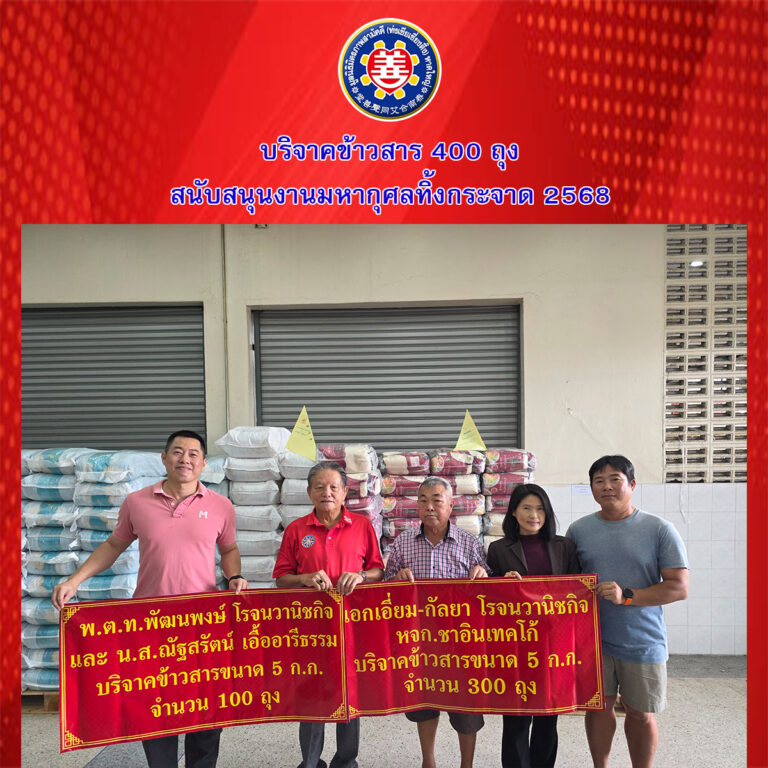มูลนิธิมิตรภาพสามัคคี (ท่งเซียเซี่ยงตึ๊ง) หาดใหญ่รับมอบข้าวสาร 400 ถุง