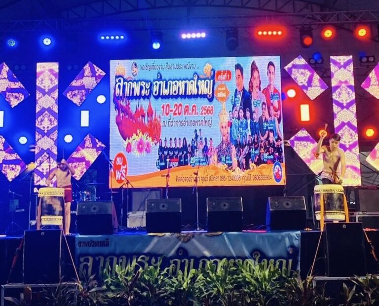วันที่ 12 ตุลาคม 2568 เวลา 19.00 น. นายเอก ยังอภัย ณ สงขลา นายอำเภอหาดใหญ่ พร้อมด้วยนางมุกดา ยังอภัย ณ สงขลา ประธานแม่บ้านมหาดไทยอำเภอหาดใหญ่ รับชมและร่วมให้กำลังใจผู้เข้าประกวด “ธิดาเรือพระ” ในงานประเพณีลากพระ อำเภอหาดใหญ่ ครั้งที่ 1 ประจำปี 2568 ซึ่งจัดขึ้นอย่างยิ่งใหญ่ ภายในงานได้รับเกียรติจากนางสาวชนภรณ์ อือตระกูล ศึกษาธิการจังหวัดสงขลา หัวหน้าส่วนราชการ นางสาวปิยพัชร์ วุ่นดำ ปลัดอำเภอ หัวหน้า