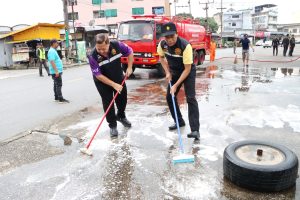 วันที่ 14 มกราคม 2568  เทศบาลนครหาดใหญ่ นำโดย พล.ต.ท.สาคร ทองมุณี นายกเทศมนตรีนครหาดใหญ่ มอบหมาย นายอาหมัด เบ็ญอาหลี  รองนายกเทศมนตรีนครหาดใหญ่ พร้อมด้วย นายภคนันท์ ประทุมชาติภักดี ประธานสภาเทศบาลนครหาดใหญ่ สมาชิกสภาเทศบาล  พ่อค้า-แม่ค้า ร่วมลงพื้นที่ ทำความสะอาด ด้วยการถูพื้น จัดเก็บกวาดขยะ แก้ไขปัญหาเรื่องขยะ ปรับปรุงภูมิทัศน์ ให้มีความเรียบร้อยสวยงามมากยิ่งขึ้น ณ บริเวณ ป.ณัฐพล