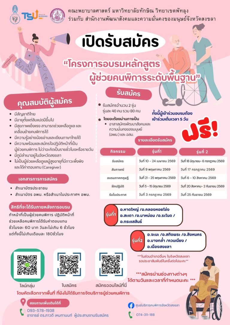 เปิดรับสมัครด่วน! โครงการอบรมหลักสูตร “ผู้ช่วยคนพิการระดับพื้นฐาน” (ฟรี! ไม่มีค่าใช้จ่าย)