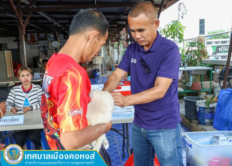 เทศบาลเมืองคอหงส์ ลงพื้นที่ฉีดวัคซีนโรคป้องกันโรคพิษสุนัขบ้า ชุมชนบ้านคอหงส์ 5-6