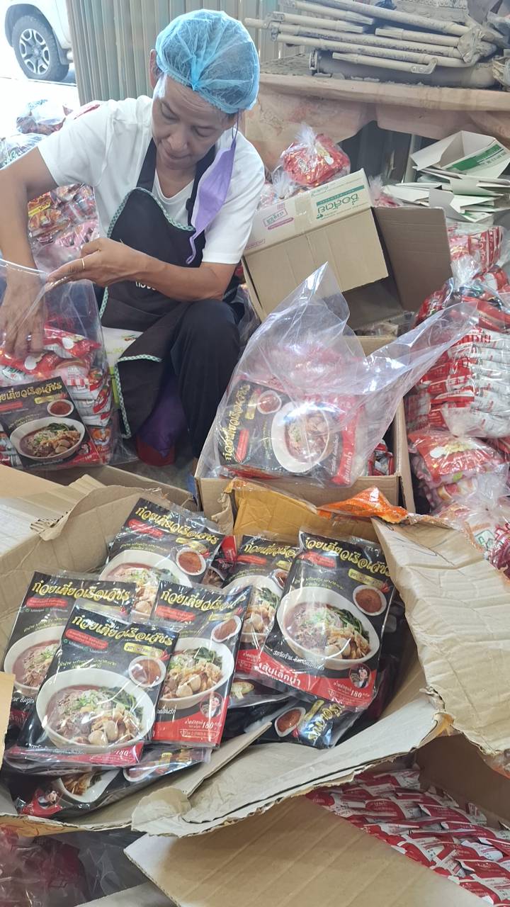 รับมอบผ้าเช็ดตัว และก๋วยเตี๋ยวพร้อมรับประทาน