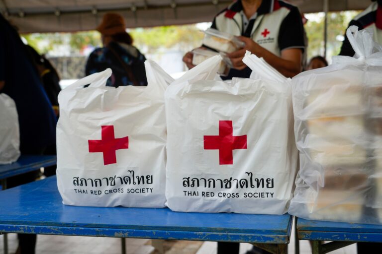 สภากาชาด แจกข้าวกล่องพร้อมน้ำดื่มให้กับประชาชน