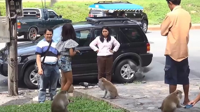 วันหยุดสุดสัปดาห์ นกพิราบและลิงเขาน้อยเขาตังกวนอิ่มเอมถ้วนหน้า หลังนักท่องเที่ยวเดินทางมาท่องเที่ยวที่แหลมสมิหลาสงขลา