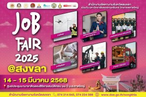 การจัดงาน“Job Fair2025 @สงขลา” เปิดพื้นที่สมัครงาน รวบรวมบริษัทฯ ชั้นนำกว่า 70 แห่ง ตำแหน่งงานกว่า 2,000 อัตรา มาค้นหางานที่ใช่ในตำแหน่งที่ชอบได้ที่นี่