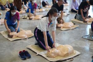 โดยภายในงานมีการบรรยายและฝึกปฏิบัติ การปฐมพยาบาลฉุกเฉิน และการกู้ชีพขั้นพื้นฐาน (CPR&AED) โดยวิทยากรจากศูนย์บริการฉุกเฉินและบรรเทาสาธารณภัย เพื่อให้นักเรียน นักศึกษา บุคลากร และบุคคลทั่วไป มีทักษะความรู้ในการที่จะช่วยเหลือตนเองและผู้อื่น กล้าที่จะลงมือช่วยเหลือ เมื่อเจอผู้ประสบเหตุในสถานที่ต่าง ๆ เพราะทุกวินาทีที่เกิดเหตุฉุกเฉิน “การช่วยเหลือที่ถูกต้องและทันท่วงที” สามารถช่วยเหลือผู้ประสบเหตุได้อย่างมีประสิทธิภาพ ลดความเสี่ยงและเพิ่มโอกาสรอดชีวิตในสถานการณ์ฉุกเฉินได้ ผู้เข้าร่วมโครงการได้ลงมือฝึก CPR บนหุ่นจำลอง พร้อมเรียนรู้การใช้ AED อย่างถูกต้องภายใต้การดูแลของทีมวิทยากรผู้เชี่ยวชาญ เพื่อให้สามารถนำความรู้ไปใช้ได้อย่างมั่นใจ