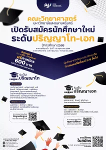 คณะวิทยาศาสตร์ มหาวิทยาลัยสงขลานครินทร์ (ม.อ.) เปิดรับสมัครนักศึกษาใหม่ ระดับปริญญาโท-เอก ปีการศึกษา 2568 ทั้งหลักสูตรปกติและหลักสูตรนานาชาติ